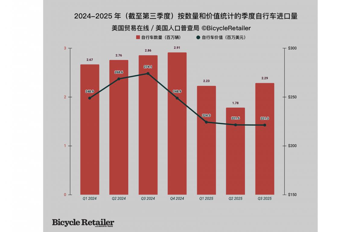 根据本周发布的最新数据,今年截至9月,美国自行车进口量同比下滑24%,进口额下降16%。