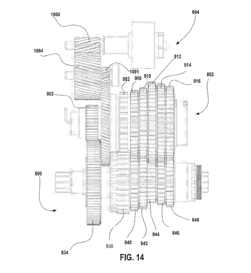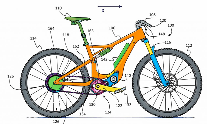 专利文件中写道:总齿轮比定义为曲柄每旋转一周链轮所需的旋转圈数。最低齿轮比为 1:1,最高齿轮比为 0.198:1。虽然该专利申请中描述的主要设计集中在离散齿轮系统上,但也提到了其他传动系统,例如内变速花鼓、变速箱和/或无级变速器。