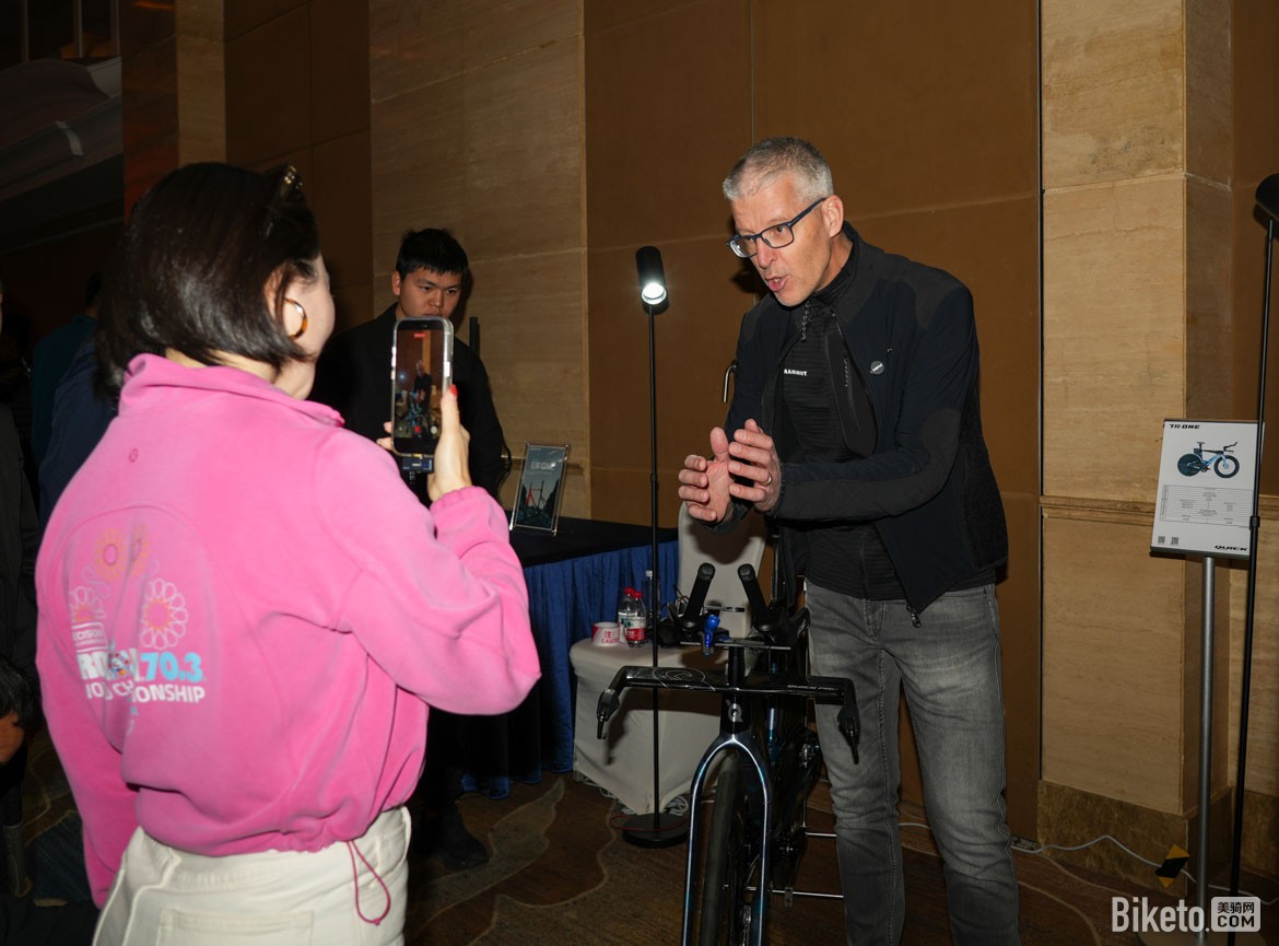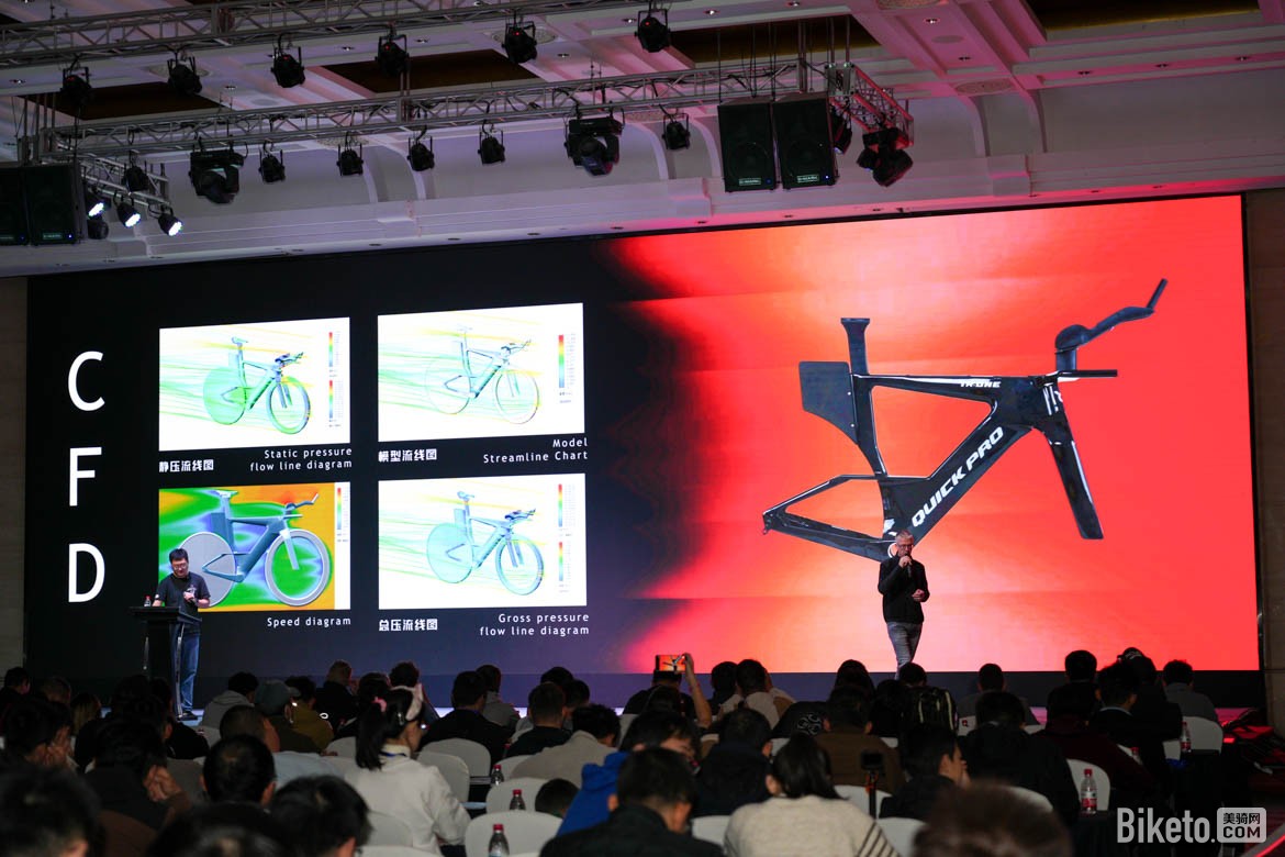 TR:ONE铁人三项自行车,由国际知名瑞士资深设计师罗尔夫参与设计,专注与极致空气动力学性能。罗尔夫在BMC公司担任设计与工程负责人已有13年。在与专业公路车队和铁人三项车队密切合作期间,他设计的赛车曾赢得环法自行车赛冠军、奥运金牌,并在科纳/夏威夷赛事中登上领奖台。罗尔夫上台为大家讲解TR:ONE的设计理念。