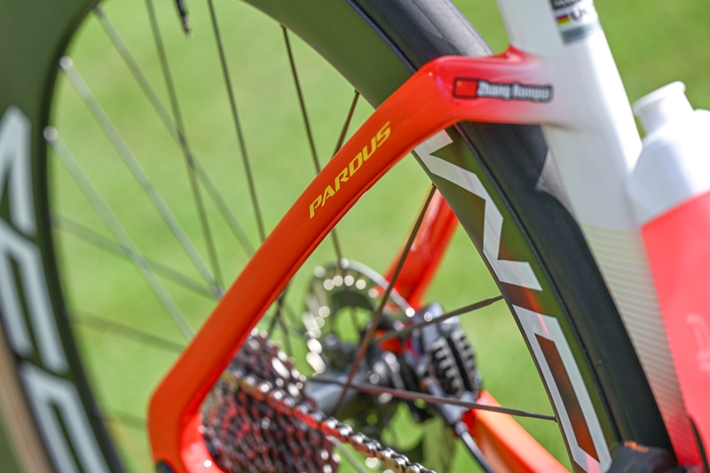 PARDUS瑞豹新一代SPARK EVO车架几何优化,每个尺码都采用不一样的前叉offset,保证不同身高的骑行者都有同样的操控感受。对比上一代车型轴距都有所增加,稳定性明显提高。继续保持大角度中管设计,新款加大REACH值,缩短了RC值,一切为了更高速的同时更稳定。