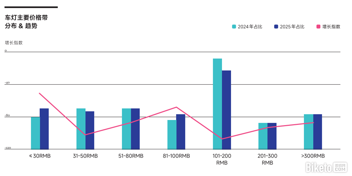 随着公路车热度降温,自行车配件市场的结构也发生了变化。此前随公路车热潮兴起的骑行头盔、骑行眼镜等品类的市场规模出现大幅萎缩,而骑行裤、骑行上衣等服饰类产品,码表、车灯等功能性装备,以及自行车坐垫、自行车包等基础配件,更接近日常使用场景,成为多数用户的必备品。从长期趋势来看,一些细分小众品类展现出较强的成长性。手机支架、轮组、脚踏等既能提升骑行体验又方便个性化改装的产品较受欢迎,适配家庭出行场景的儿童座椅也持续走俏,反映出用户在骑行消费上的实用化、个性化趋势。