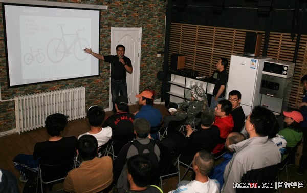 开幕典礼结束后,BH中国公司业务经理李文贤先生在店内综合区为大家介绍BH品牌的悠久历史,讲解BH自行车的设计特点和技术优势,并与车友们进行了互动,听取车友对产品的希望和建议。