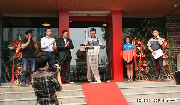 揭幕仪式由西班牙比驰自行车北京旗舰店执行总经理、北京悦野单车俱乐部负责人庹笑泉先生主持,常务总经理陈恭尧先生代表西班牙比驰北京旗舰店致词,向在筹备期间西班牙比驰总部及各方友人们给于的热忱支持表示了深挚的谢意。