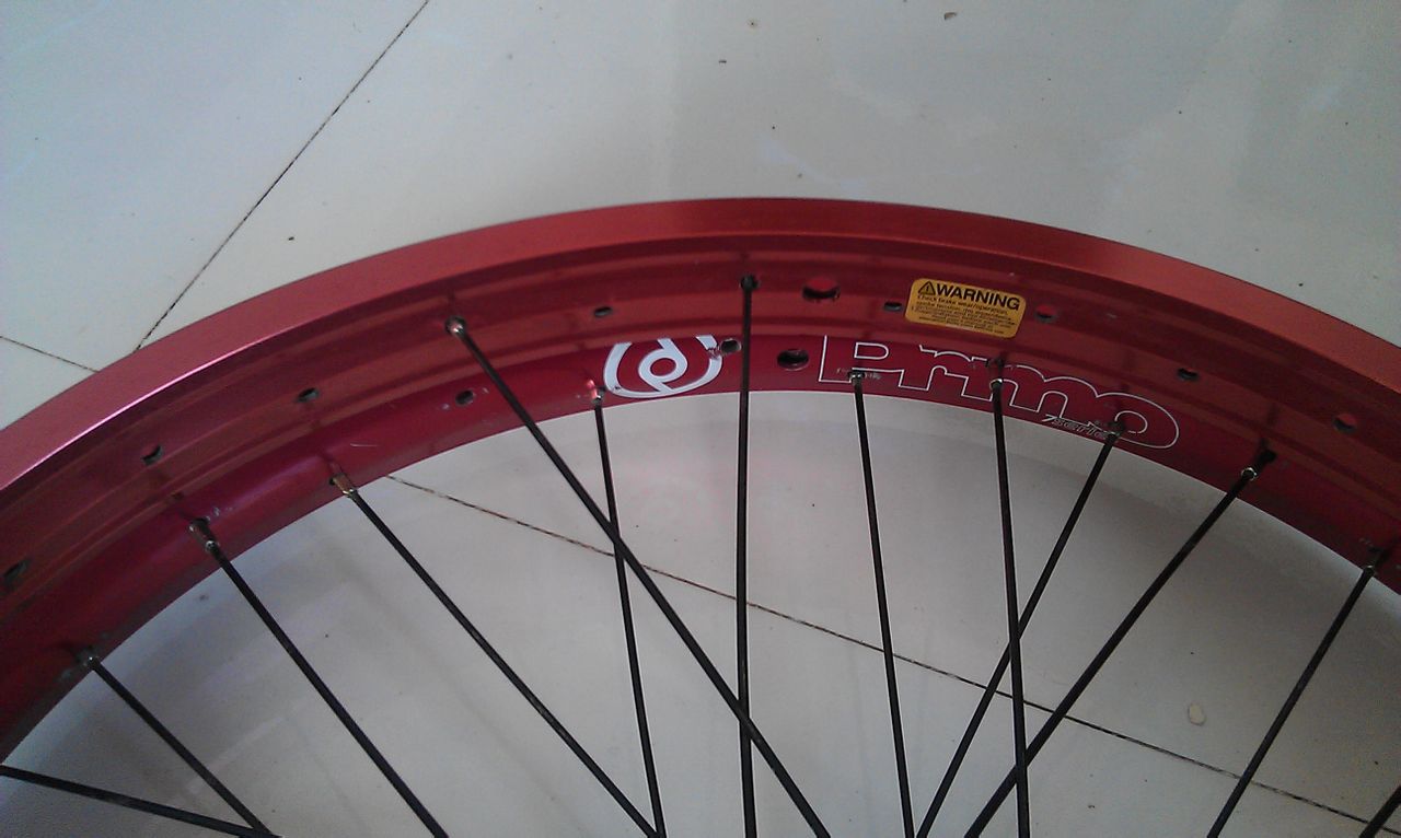 此时你只需要用辐条扳手或螺丝刀把辐条帽上紧,就能开始调圈了!不会调圈的就那拿出去去车行或者去修车摊调圈了!