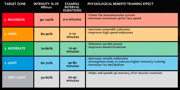 运动区在基于心率基础上的训练非常有效。训练根据你最大心率的百分比被分为5个运动区。根据这些运动区,你就可以很方便地选择并监测训练强度,遵循根据运动区设计的训练计划。