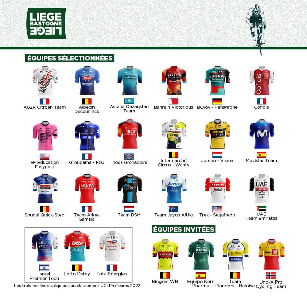 参赛车队。根据UCI规则,“环列日”作为UCI世巡赛级单日赛,共有25支车队参赛,其中有18支世巡赛车队和3支排名最高洲际职业队“直通”赛事,组委会另外给四支洲际职业队发放“外卡”,具体如下