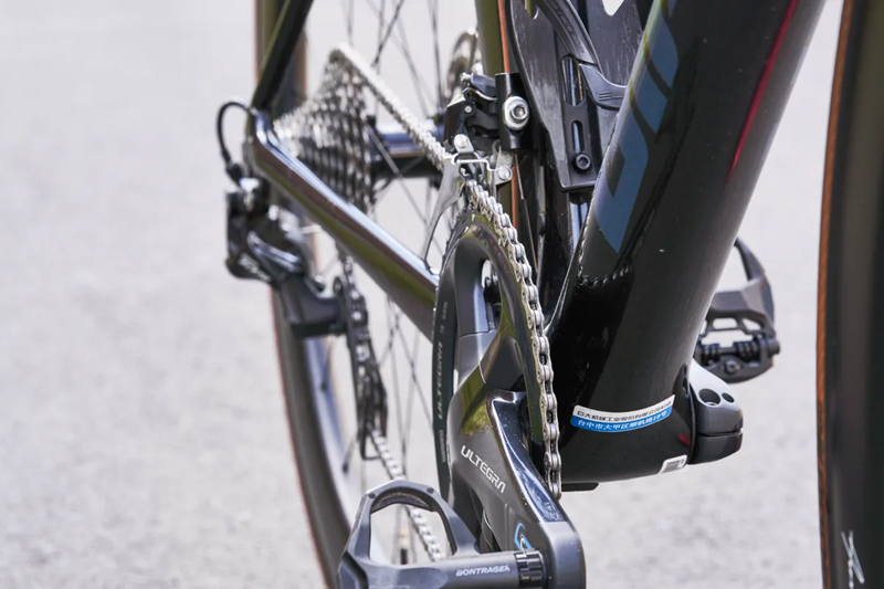 ▲TCR上的禧玛诺Ultra R8000传动系统交叉链现象