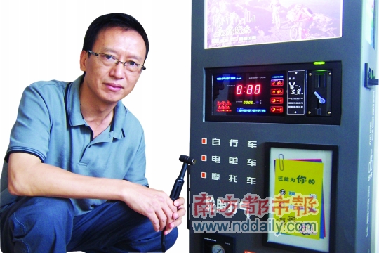 黄汝逸今年50岁,据他介绍,发明轮胎充气机的灵感来源于自己的孩子,由于小区里骑自行车的小孩很多,但是在深圳这样的大城市,街头根本找不到给自行车充气的场所,经常要走很远,到农贸市场才能找到打气点,自行车充气成了一个不小的难题。)