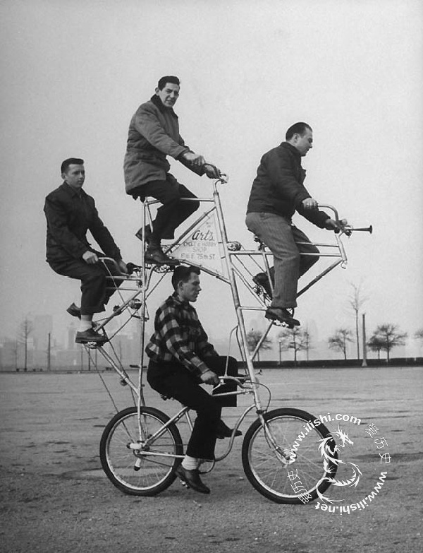 上个世纪40年代的人们如果穿越到今天,估计会对自行车发展到如此的司空见惯表示诧异。在他们的时代,他们不断进行自己所认为的创新,发挥想象,于是各种怪异的自行车便这样给制造了出来,以下用一集老照片来记录自行车的发展。