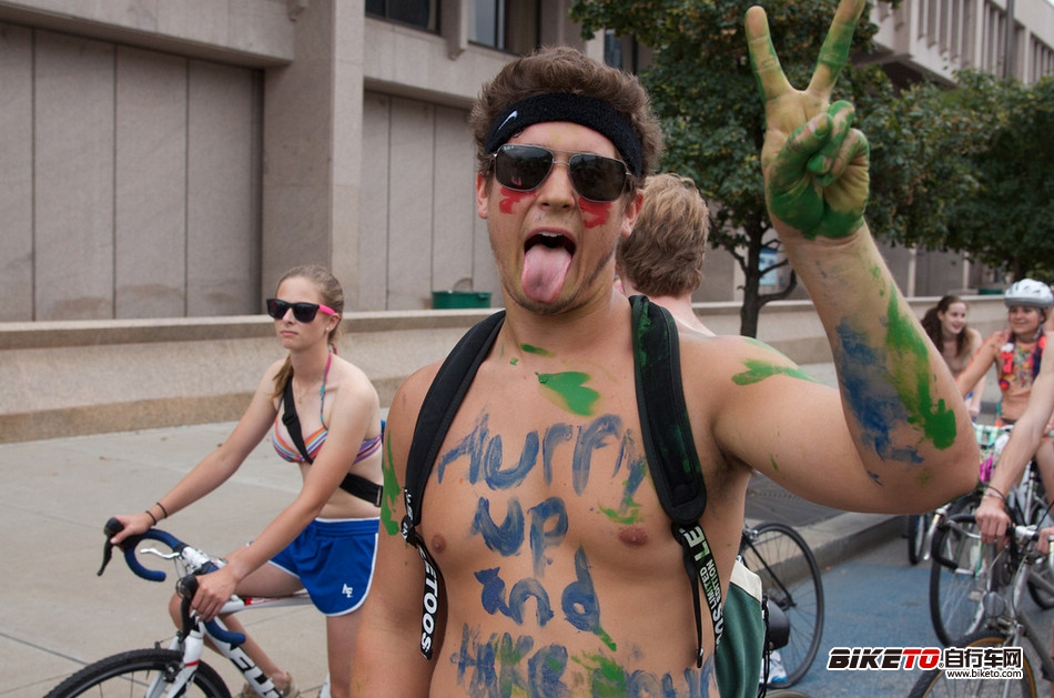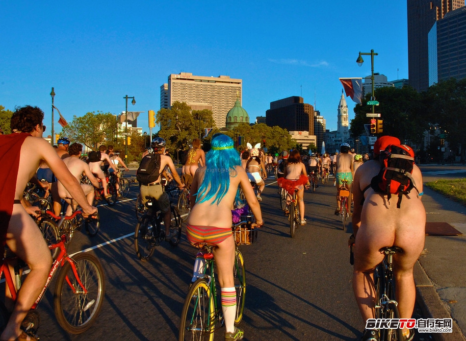 从2004年以来,有超过20个国家、70个城市的人们通过裸骑来庆祝自行车文化,并提升积极的自我形象。在许多团体看来,裸骑意味着对环保的呼吁以及对汽车文化的抗议。费城裸骑活动便是其中的一部分,8月25日,正值该活动举行到第五届。与去年多达2600名的参与者相比,本届的人数只多不少。当天,参与人员穿越城市的街道,骑行了约10英里。对了,费城裸骑可没有强迫参加人员必须赤身裸体,这让参与性大大加强。