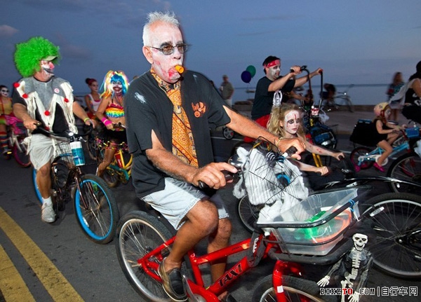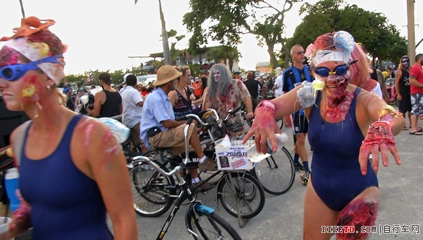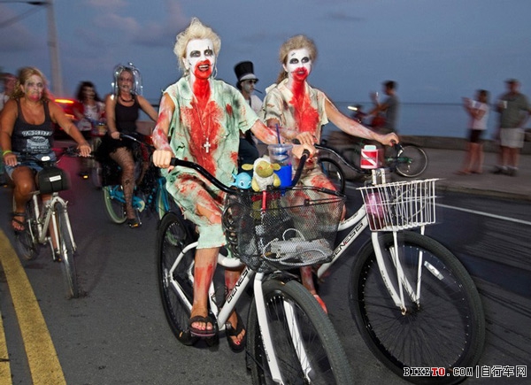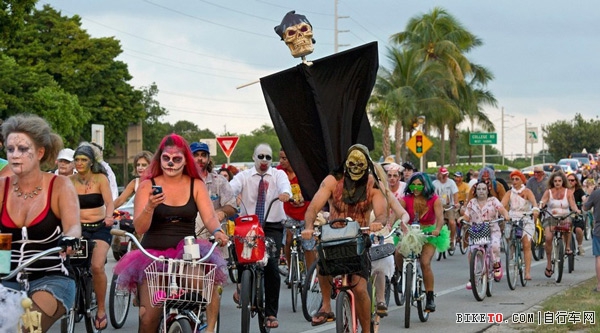 美国佛罗里达州2013年10月20日,千人化装成僵尸骑单车,场面非常有意思,当地正在庆祝化妆狂欢节日,狂欢将从18日一直持续到27日。