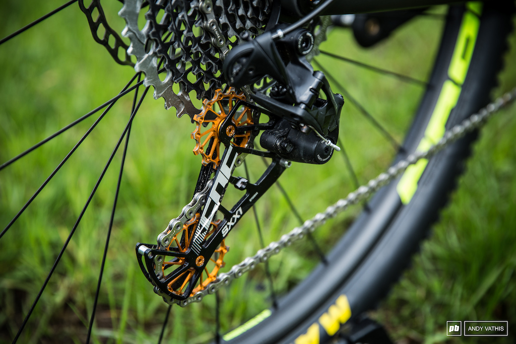 SRAM XX1 Eagle后拨搭配KCNC金色导轮“大鸡腿”,十分吸引眼球