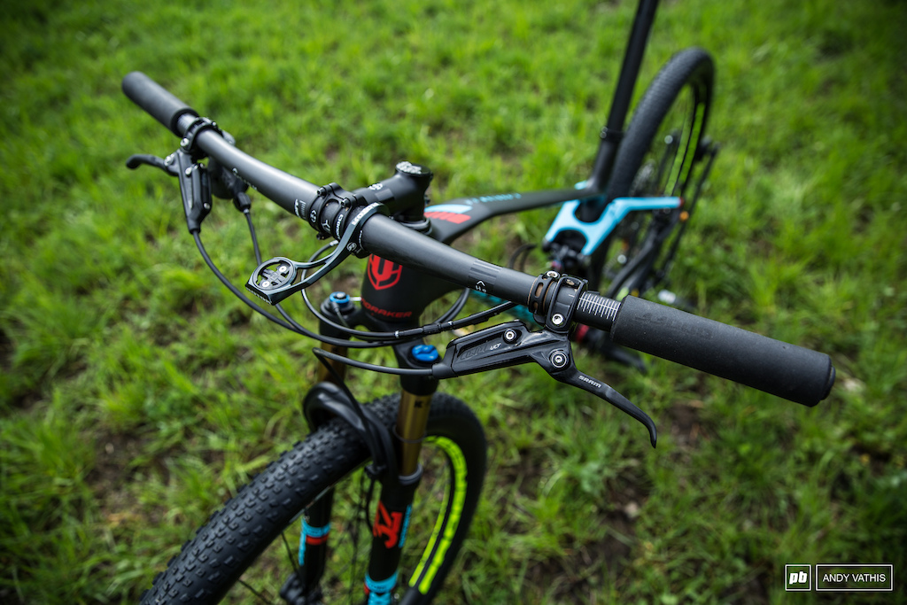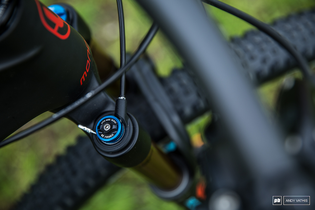 Mondraker标配50mm超短把立,以弥补F-Podium设计超长的前伸量(reach),如果换上100mm把立估计可以刷新XC战车的前伸量。