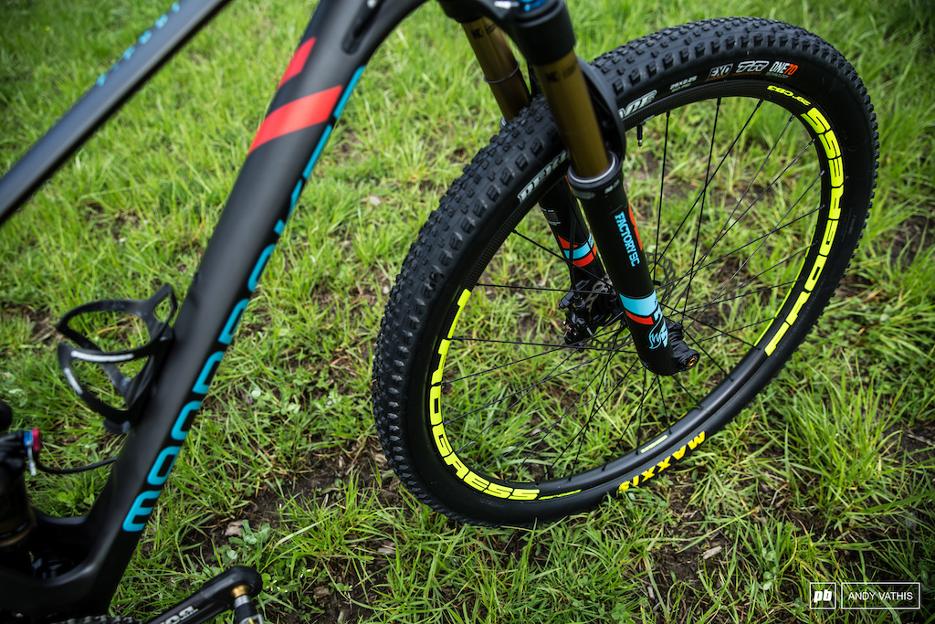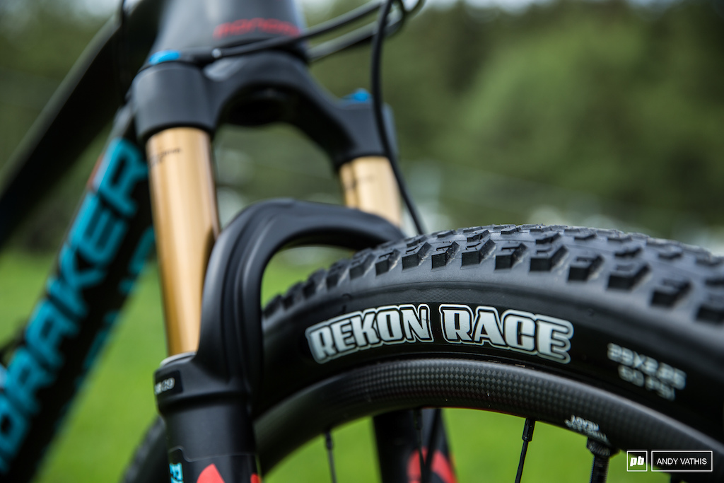 Maxxis Rekon Race外胎,胎齿如此平缓的外胎在乱石技术赛道遍布的世界杯赛场上还是比较少见的。