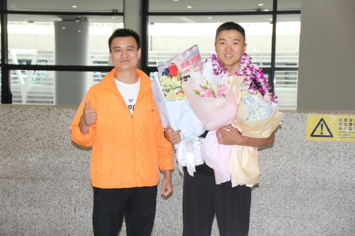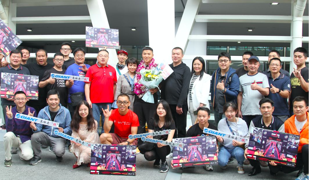 10月11日上午,浩然从巴塞罗那归国,捷安特内销总经理朱雄瑜带领同事前往浦东国际机场接机,一起接机的还有浩然的父母、女友和好友等。大家带着鲜花花环还有欢迎牌,早早在机场大厅等侯,准备举行一场特别的庆祝仪式。