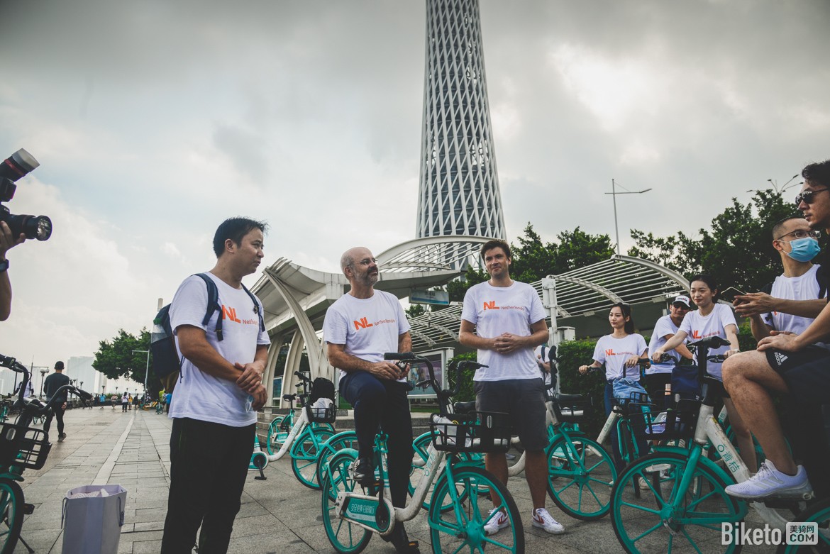 9月21日上午的骑游活动从广州塔出发。选择从广州塔出发,一方面广州塔是广州的地标,另一方面广州塔与荷兰也很有渊源。广州塔就是由荷兰建筑师Mark Hemel和Barbara Kuit夫妇设计的。