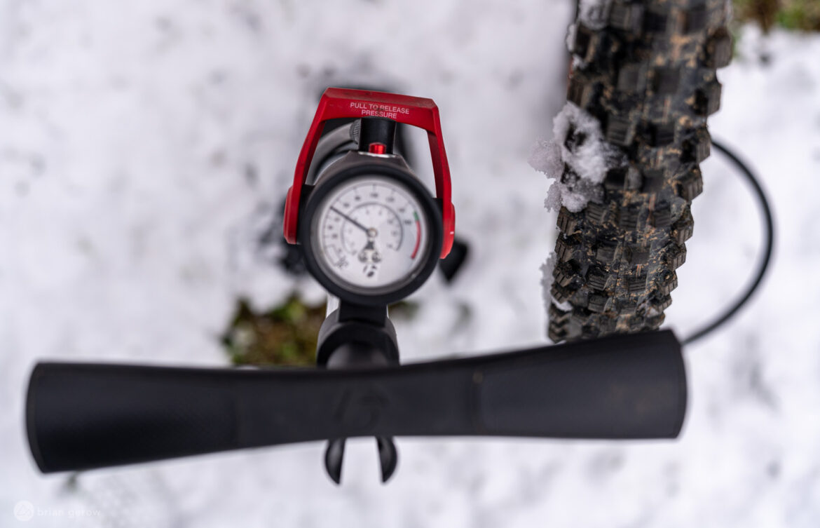 另一种精确确定胎压的方法就是给轮胎稍微过充,然后用手持式气压表缓慢放气,这有点像调吉他弦。最后,我不建议使用放气的方法来调整真空胎的气压,虽然可以通过过充和释放气压来达到想要的精确数字,却可能将补胎液吸入气筒中,随着时间的推移,补胎液最终可能会导致气筒内部问题,缩减气筒寿命。我对这种担忧做了测试,连接气筒从新安装的真空胎上放气,然后拆下连接管,仔细观察内部。果然管子内有了补胎液,而且在更深层更隐蔽的地方,当然这一切可以通过专门的手持气压表和不太精确的手动放气来解决。