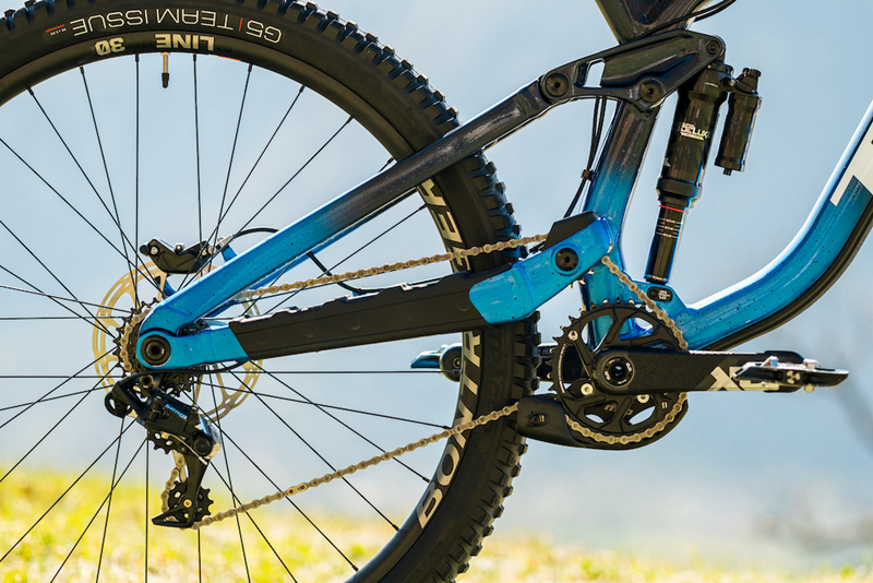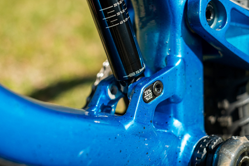 新款Session所有尺码的头管长度都是117mm,这也带来了相同的stack 值。这样做应该是为了方便更换轮组规格从29到27.5的搭配。在前后29“轮径,Mino设置在高位(High Postion)时,BB上升高度略低于9mm和头部角度为63.6°。链距也缩短了大约4mm,reach值增加了6-7mm,这取决于车架尺码大小,后避震行程略有增加,达到204mm。