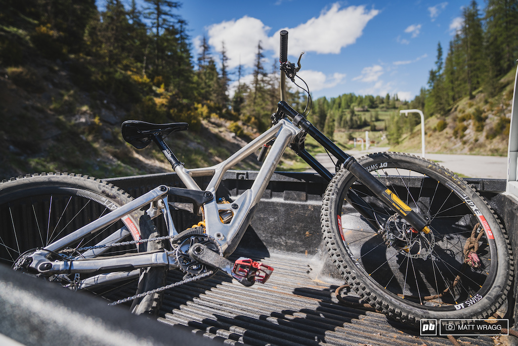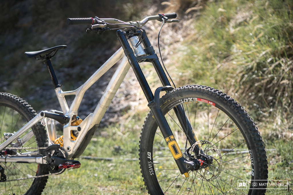 今年,卢瓦克的Demo稍微加大了一点尺寸,有段时间卢瓦克一直怀疑他骑的车有点小,当看了自己的图片和视频后,这进一步证实了他的想法。他觉着,自己车的reach值还可以再长一些,这样自己在骑行时动作能够更舒展,更自然。虽然这款新车的尺寸是定制的,但他说和S4的尺寸差不多,reach值达到了465MM。在赛季开始前这辆车是裸漆状态,不过这种纯金属的“工业风”也是相当酷的,不比那些“花里胡哨”的涂装差。