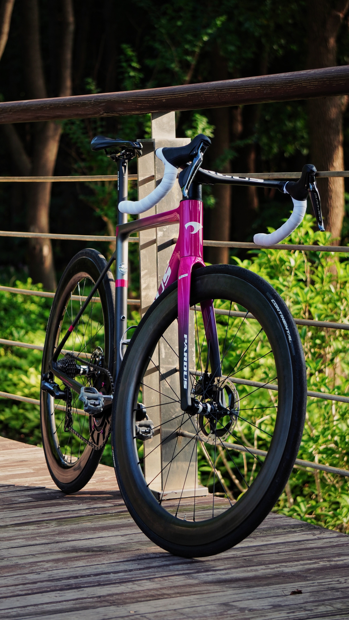 几何方面,乍看之下是偏激进的设定,但车架组配套的Wing一体把提供了全系20mm的抬升,搭配使用能一定程度上缓解车头过低的问题。操控调性上,以我这台M码为例,73°的头管角配合前叉45的rake和57的trail使得车头的操控较为灵敏,然而410的后叉长和70mm的bb drop又给不到无比迅捷的压弯反应(圈刹400mm的后下叉才是正道!)。整台车的几何不算竞技,在综合大组车里面是比较中性的几何,更适合大部分普通车友。