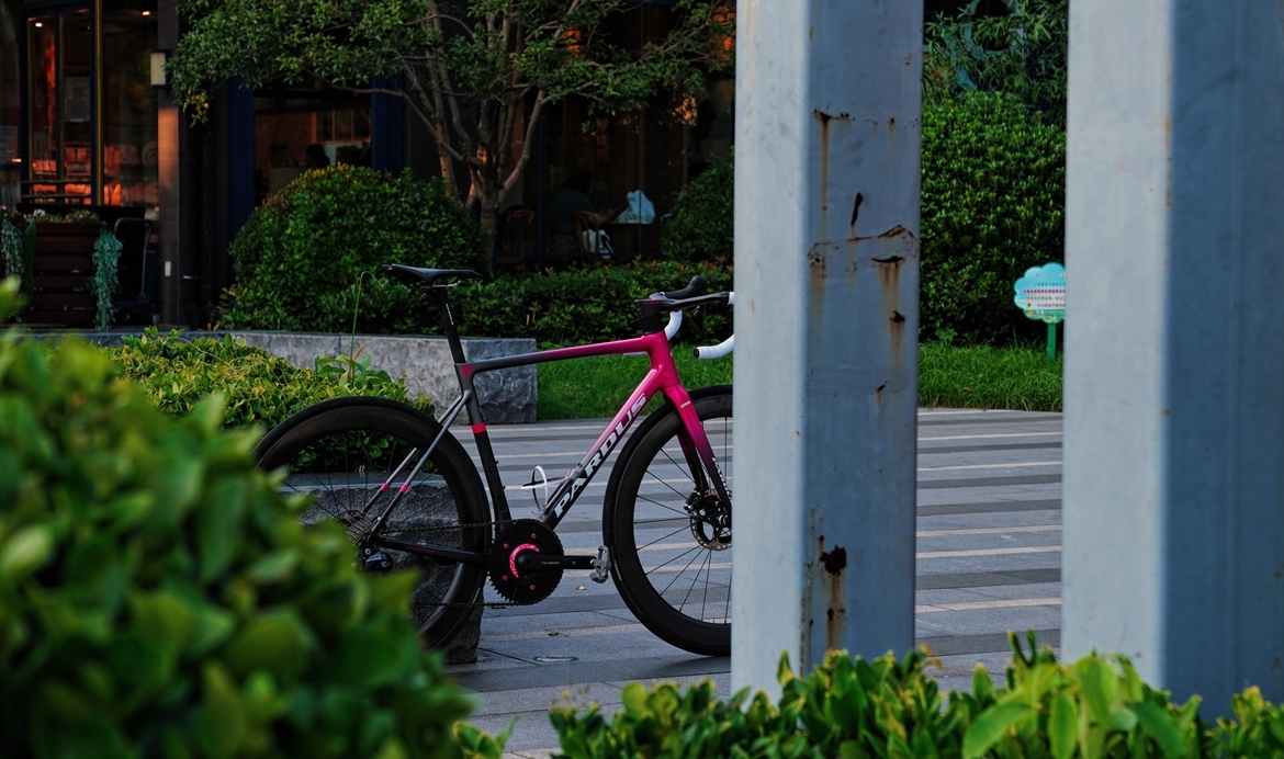 整车的气动性还体现在锋利扁平,带有一个小叉肩的前叉造型,同样是1.5英寸轴承的缘故,上管十分宽扁。除此以外则便是一台大组车的标准设计:圆立管、27.2圆座管(采用了内置座管夹)、下沉的后上叉、圆形的纤细后上叉、较为清瘦的五通……不过值得吐槽的是五通规格为pf30而非bb386,大概是为了轻量化做出的妥协吧。