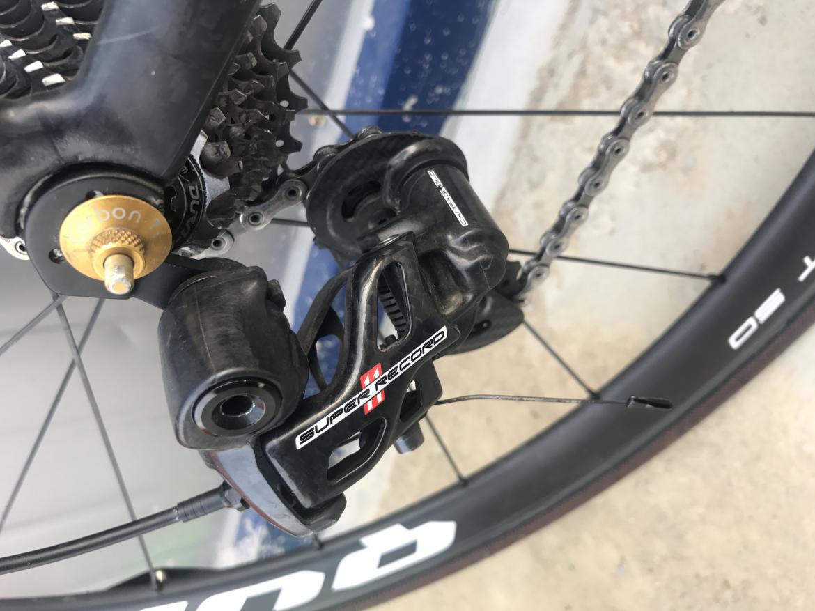 2017年10月份,我卖掉了原来的Mavic轮组和电子变速,升级了隔壁“老王”牌爬坡轮组和CampagnoLo Super Record机械变速。