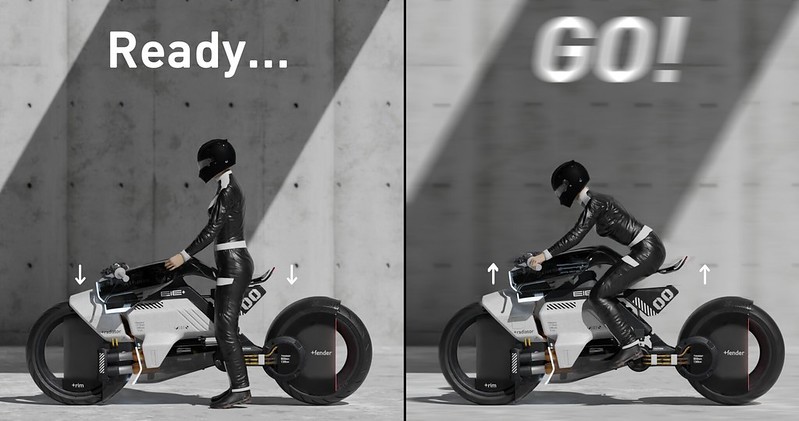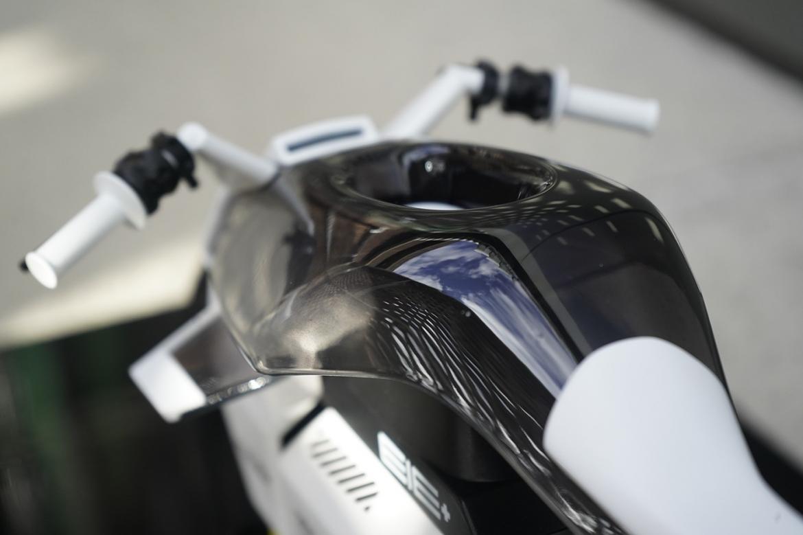 这款电动摩托车的突出特点是它的变形能力,可以根据骑车人的需要提高或降低座垫部分。座椅位置可以在上下摩托车时降低,在开始骑行时提高。此外,该部分可以完全拆除,并更换为双人座或其他不同的单人座。