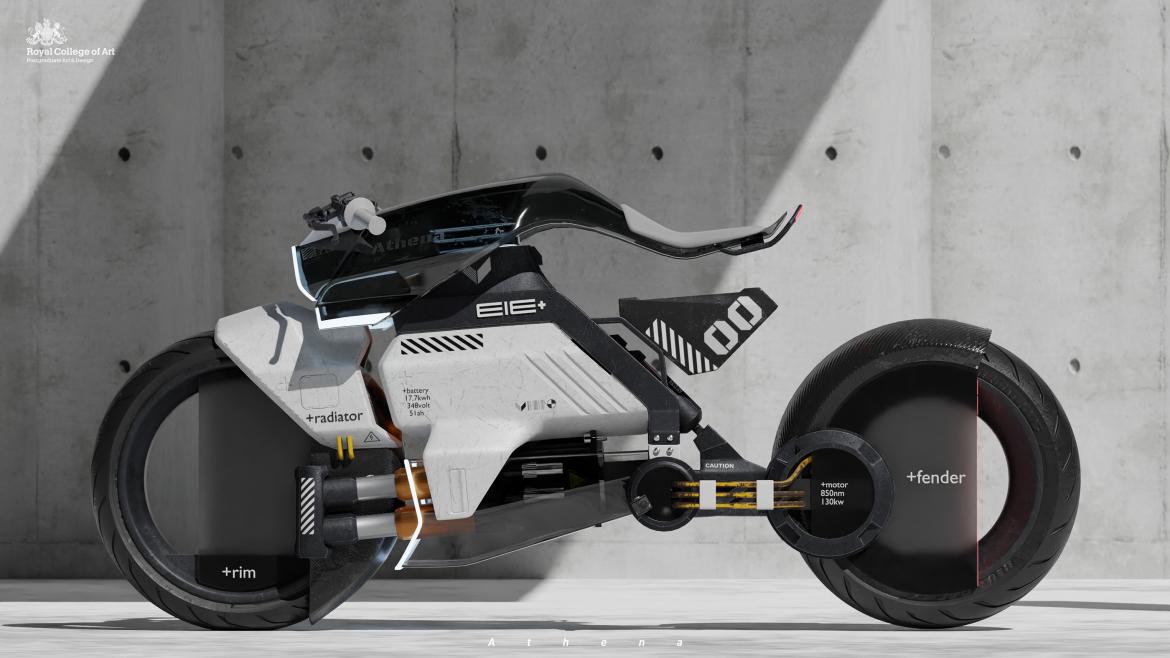 Athena是伦敦皇家艺术学院工业设计师谢正宣(Zhengxuan Xie)的创意,并将其作为毕业设计。该项目以“内在的力量”为理念,旨在强调矮个子的力量在于他们的思想,而不像高个子和强壮的人那样一眼从外在看出力量。为了证明自己的观点,设计师甚至找了一个身材娇小的人来帮他确定摩托车的尺寸。