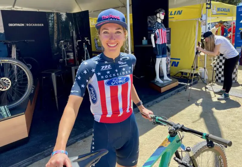 海獭展上挤满了各个项目职业车手,他们有可能不是来比赛的,只是来凑热闹。外媒很幸运在十项全能训练营中遇到了现任Elite XCO美国全国冠军萨维利亚·布伦克。