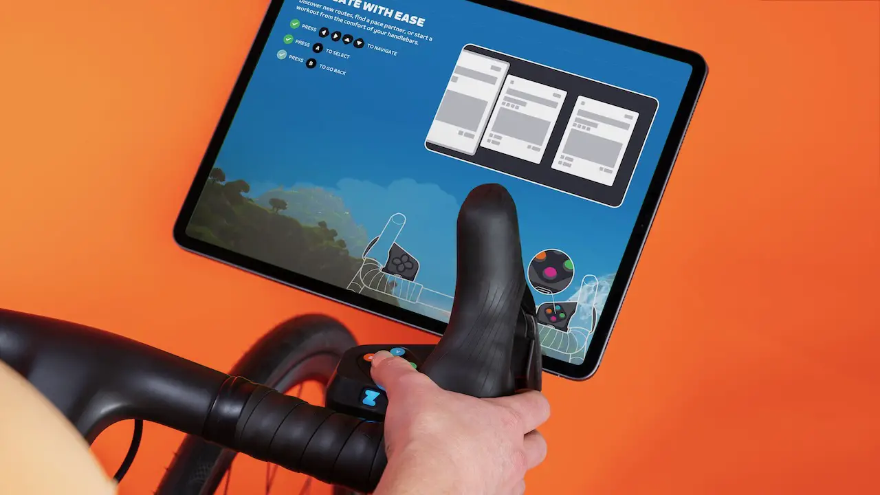 Zwift Play可以安装在手变上,可以让车手在配套应用程序上控制和操作骑行、调整FTP、调整训练间隔等。除了这些Zwift之前版本已有的功能,现在,车手可以通过控制器控制、转向和刹车,让笔记本电脑和平板电脑获得急需的休息时间。