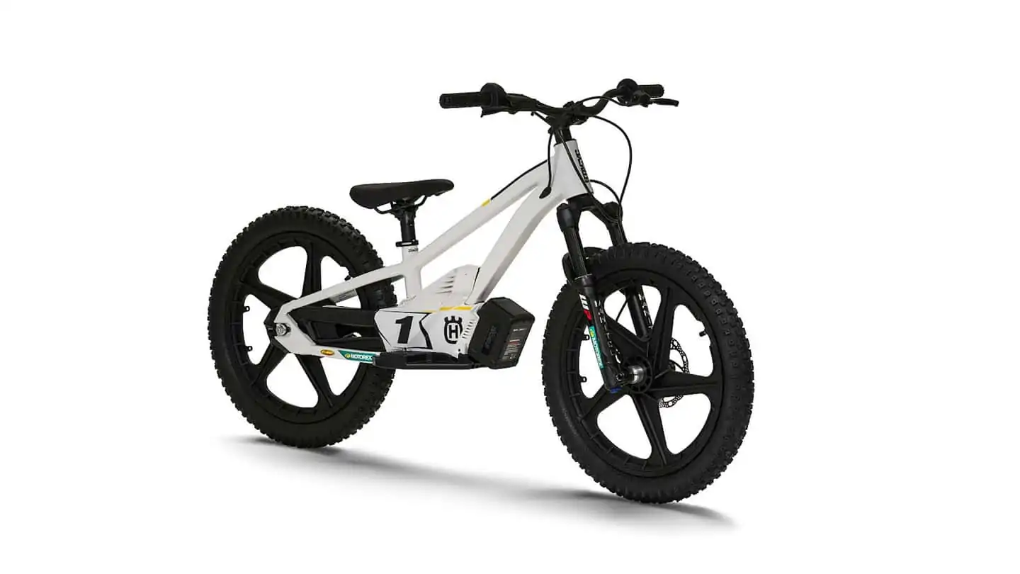 Husqvarna的EE 1.20几乎体现了相同的设计理念,但采用了Husqvarna特有的干净白色配色。平衡车配备了三种动力模式,最低设置上限速度为每小时16公里。随着孩子们信心的增强,他们可以在高级模式下将速度一路调至32公里/小时。这款自行车适合12岁以下的儿童,坐高最低位60cm,以便自信地将双脚踩在地面上。与GASGAS平衡车一样,Husky也配备了Manitou J-Unit Machete前叉和液压碟刹。