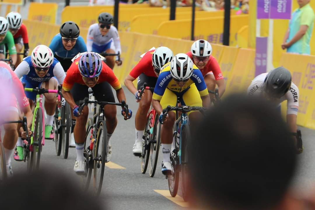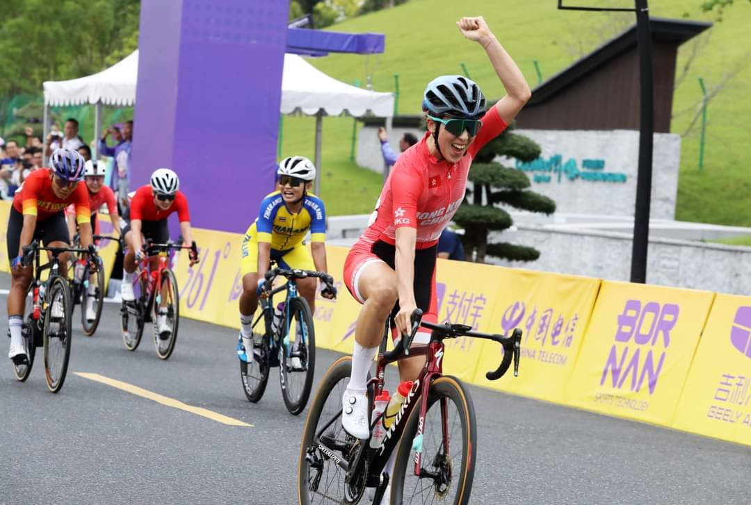 二人突围来到终点前1公里转弯口,此时轮到罗雅凛领骑,但二人开始勾心斗角。不久,主集团气势汹汹追上来试图吞没二人,但还是慢了一拍。杨倩玉显然汲取上一届亚运会教训,更好的把握战机拿下冠军,为中国香港队赢下意料之外的金牌。