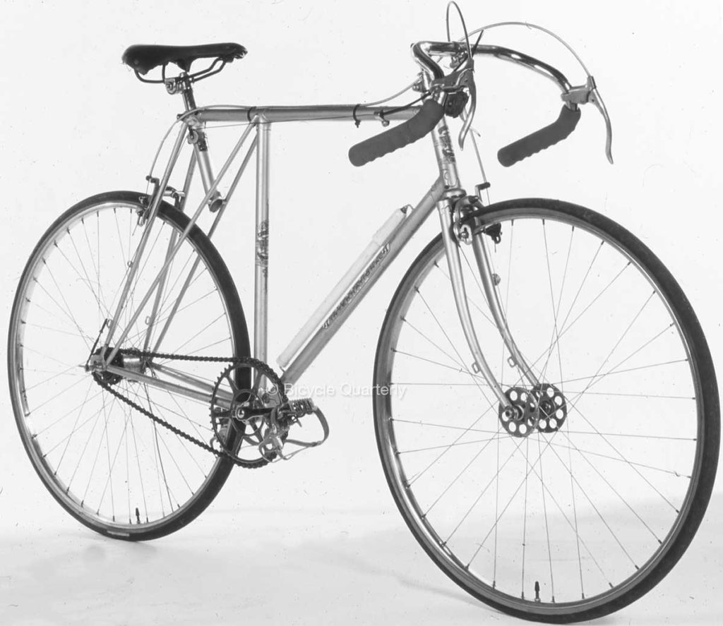 在法国,这通常是圈刹。早期的刹车制动效果不是很好,所以你需要用很大的手劲儿来刹住自行车。大多数人都是右撇子,用右手控制单个刹车是合乎常理的。因此,单个刹车手柄安装在右侧,用来控制后刹车。在意大利和英国,唯一搭配的刹车是倒刹,而且根本没有刹车手柄。