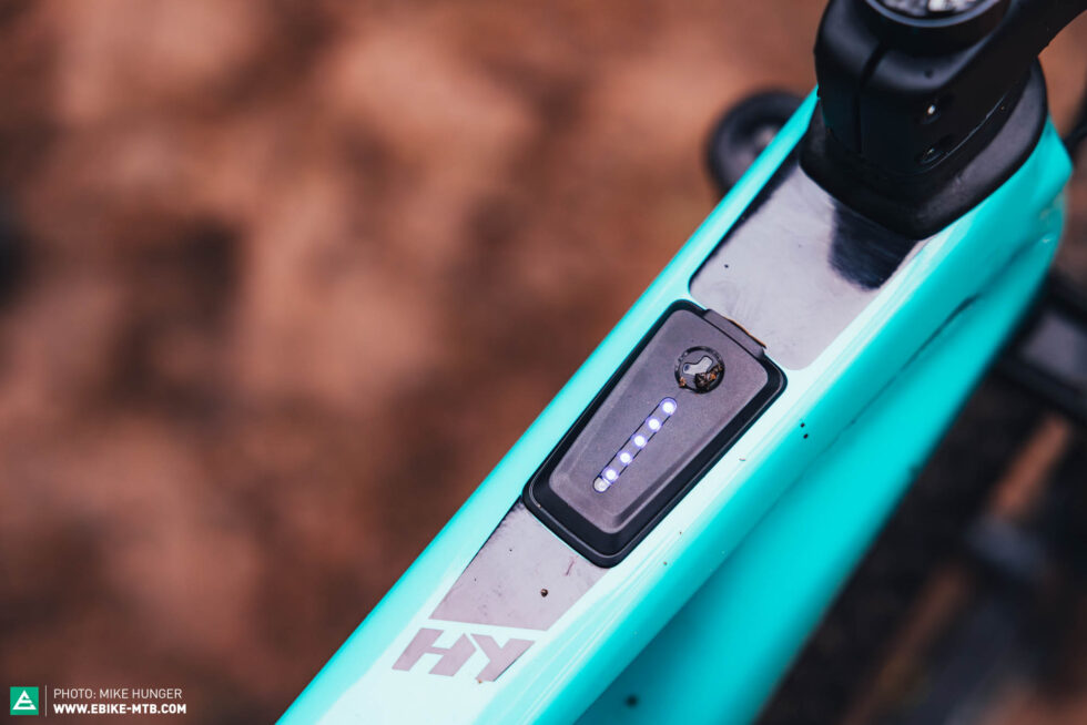 FAZUA LED集线器集成在上管中,并借助彩色LED提供所选支持模式或电池电量的概览。电机通过 FAZUA夹环式操作按钮控制,但不幸的是,它仍然具有一些廉价的感觉和外观。