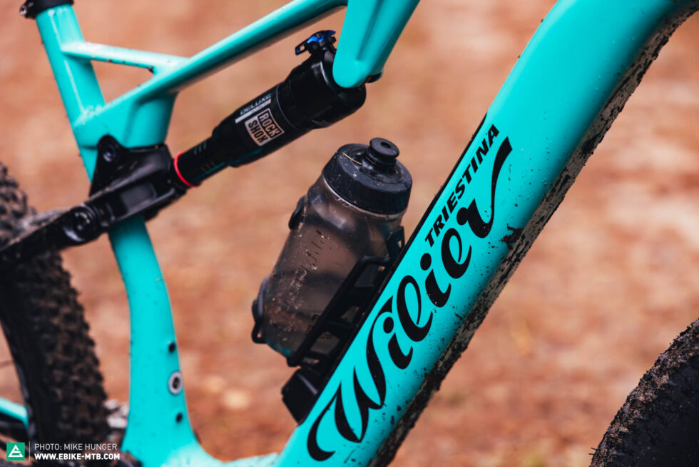 Wilier Urta Hybrid给人留下了自信的印象,它似乎像意大利跑车一样大秀肌肉,展示出清晰的线条和棱角。与它的同胞兄弟一样,避震器的位置与后上叉在一条线上,并与上管平行。因此,大的前三角有足够的空间容纳两个水壶架。即使在漫长而炎热的天气里,你也可以在骑行中补充水分。