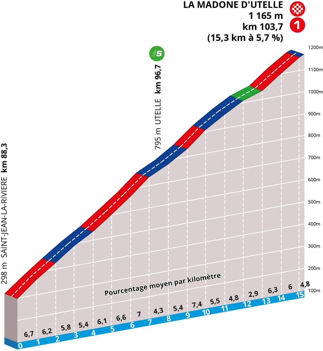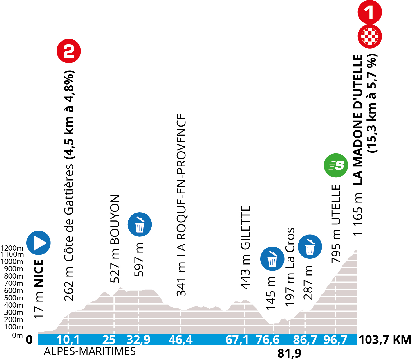 赛事路线。本场比赛赛程103.7公里,从尼斯出发前往拉马东乌特勒山。对于总成绩战线选手而言,这将是决定冠军归属“天王山之战”。拉马东乌特勒山(坡程15.3公里,平均坡度5.7%)非常适合埃菲内普尔和罗格里奇,官方预计二人将展开一场强强对话。