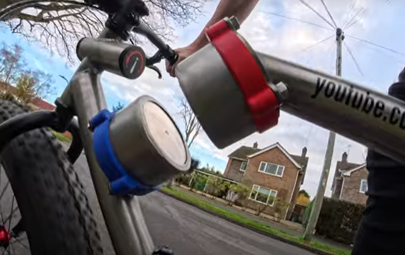 这个实验的起点是一个既简单又激进的想法:磁铁间的斥力能否替代减震器的常规工作?为了找到答案,Colinfurze拆解了一辆从废料场救回的自行车,在车架上安装了旋转支点,并开始测量骑手上车时压缩结构所需的力量。基于这些自制测试,他设计了一个系统:让磁铁以相同磁极相对,产生一个固定距离,从而起到一种"隐形弹簧"的作用。