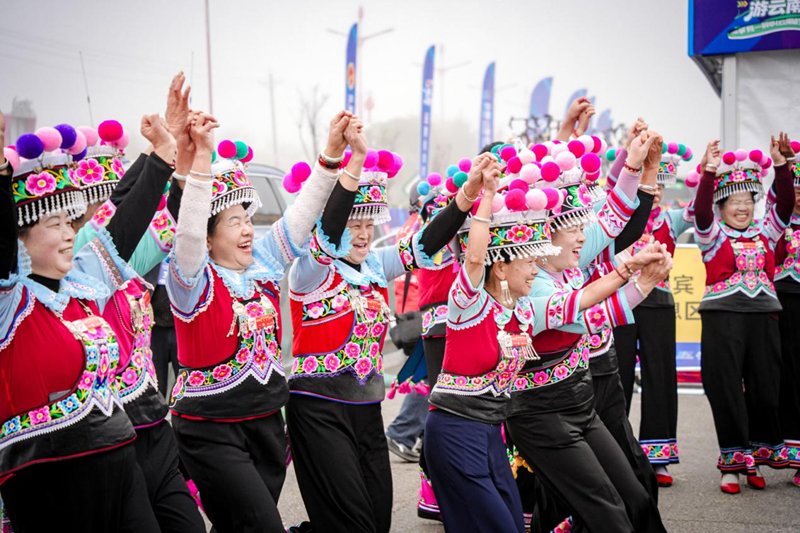 本届赛事以“跟着赛事游云南,畅想有一种叫云南的生活”为主题,上午9时30分,比赛在楚雄彝风文旅湿地小镇拉开帷幕。开赛仪式上,融合了彝族非遗的说唱节目《中国火城、浪漫花都》热烈上演,其中舞蹈部分是传承千年、被誉为彝族文化“活化石”的左脚舞,身着民族服饰的演员,以奔放的节奏为赛事点燃了热烈的文化氛围。