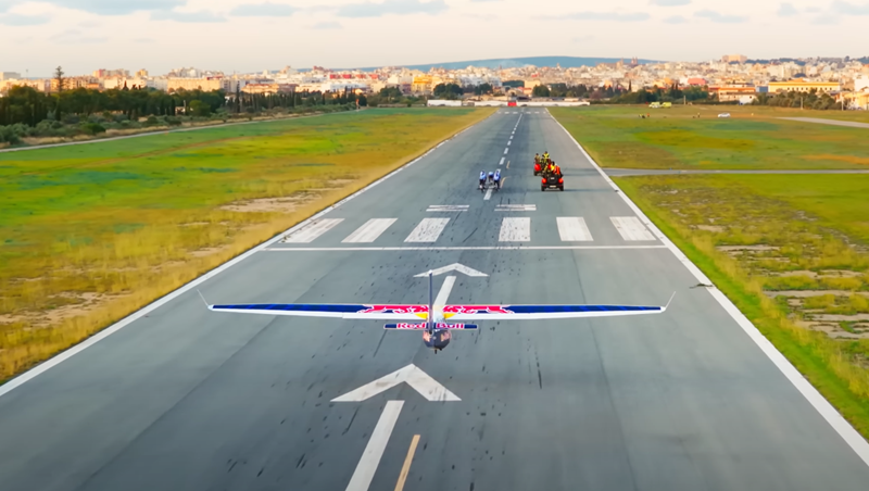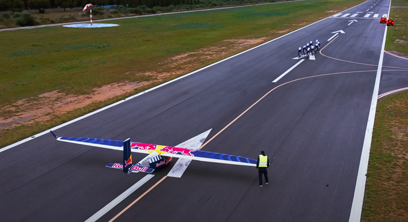 整活还得看红牛:史上首次用自行车拉动飞机起飞