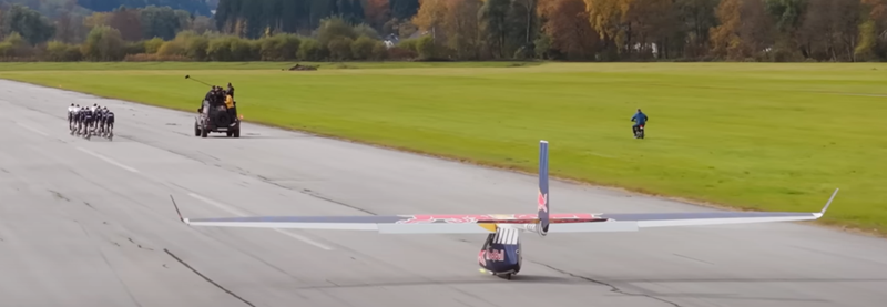 滑翔机驾驶员说:"被人力拖曳是一种特别的感受。我非常高兴终于能将航空与自行车运动结合起来,并看到红牛将我们的新想法变为现实。"