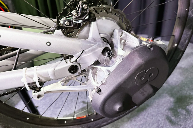 上管处的监测系统是用于评估目的,似乎是车把控制器,而非公路版Skarper使用的应用程序控制。Skarper表示:"Skarper代表着'第三驱动系统'的到来——这是一个专利技术平台,为传统的电助力自行车集成提供了模块化、高性能的替代方案。"