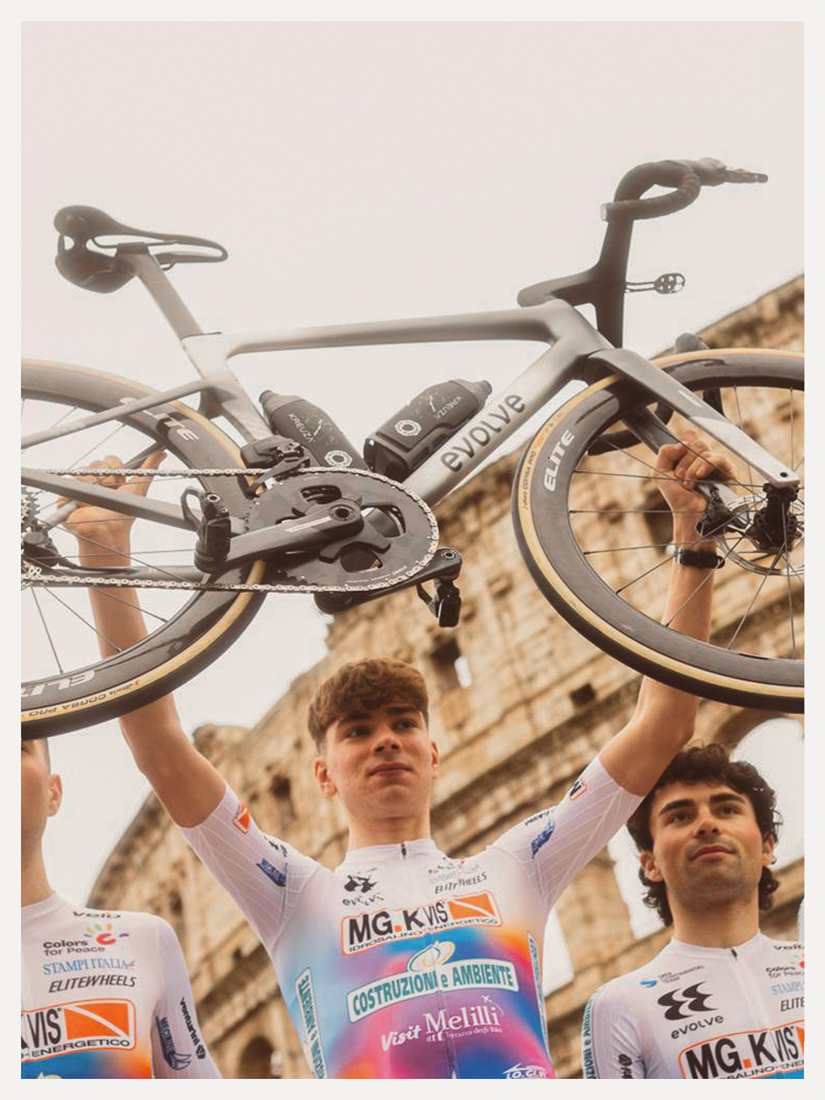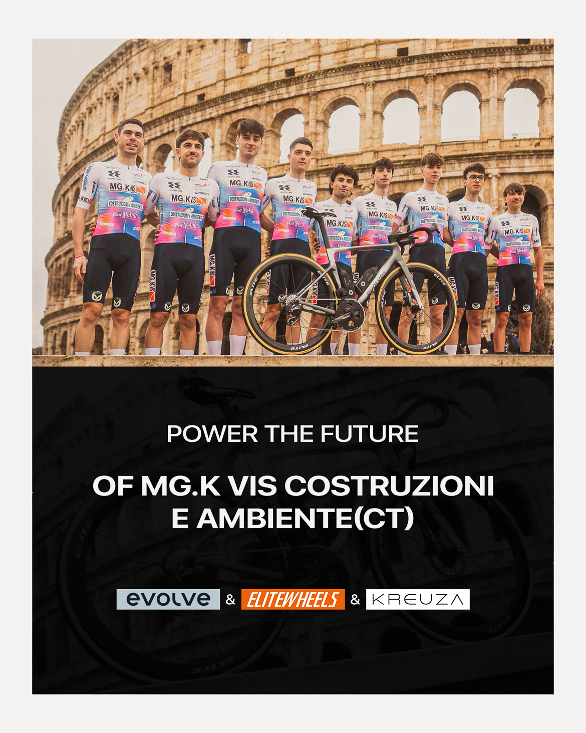 在世界职业自行车赛场上,意大利洲际劲旅Mg.K Vis 环建洲际车队(Mg.K Vis Costruzioni e Ambiente)在新赛季迎来两位来自中国的技术伙伴——专业轮组品牌Elitewheels壹力特与竞赛级车架品牌evolve极也。基于技术验证与产品共同进化的长期工程伙伴关系,两家中国品牌与Mg.K Vis环建车队共同达成2026赛季合作。