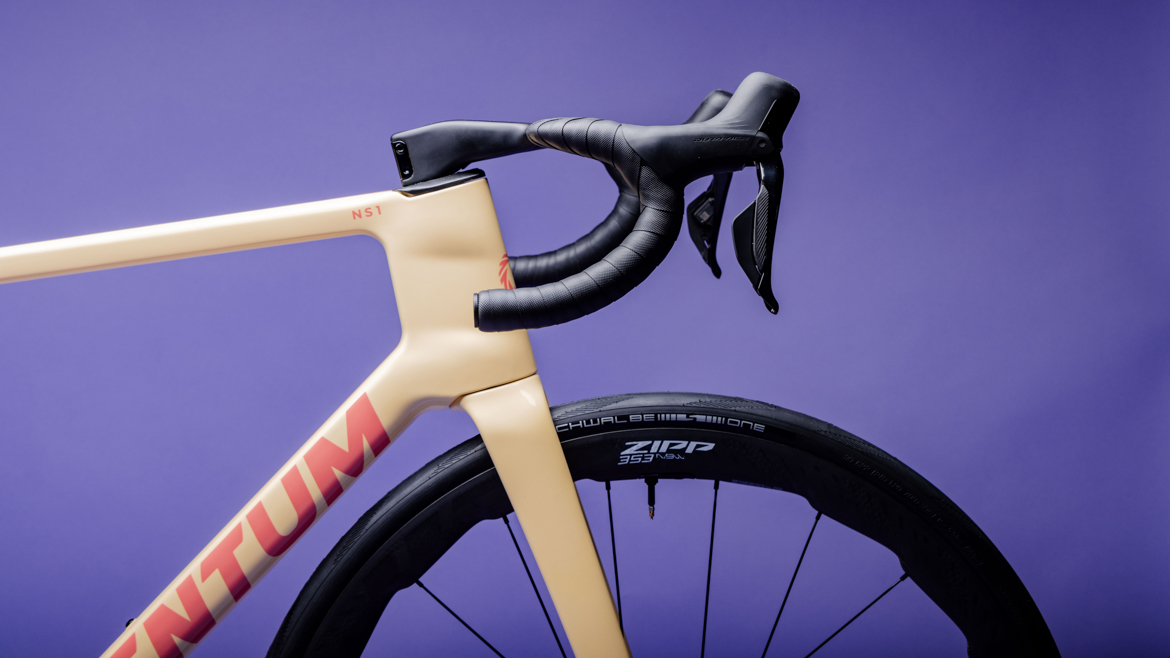 美国品牌Ventum推出第三代旗舰气动车NS1,主打轻量、气动、舒适长距的全能平衡,相比第二代全面优化,核心是更轻,更硬,更全能,在平路破风、爬坡效率与长距离舒适度之间取得最优解。设计不追求极端激进的低风阻姿势,而是让骑手能更轻松、更持久地保持气动姿势,从而输出更稳定、更高效的功率。车架仅重852g,瘦身203g,五通刚性提升11.9%,头管刚性提升7.7%,踩踏与转向更直接、高效。气动设计借鉴TT的技术,加长头管,前缘锐化并向前延伸至舵管前方,形成更高效的翼型,大幅降低正面风阻。前叉经过重新设计,叉腿加深、加长,与头管平滑过渡,优化气流管理,同时增强前端刚性。几何是最大的亮点,非常友好,对比一般的气动公路,堆高直接加13mm。M/L码的堆高来到565mm,相当于多了20mm垫圈,座管有10mm的偏移量,Reach几乎没有变化,最大兼容35mm轮胎,车架组售价为3599美元。