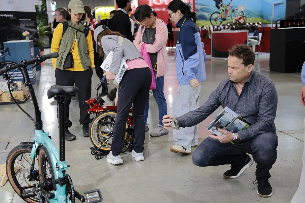 大行展位,大行全新三折叠LUNDEN、弯把折叠公路车Télodon C8 AXS、折叠电动三轮车E-CARGOE、电助力折叠自行车E-HEMINGWAY、轻快小跑K9,吸睛无数。