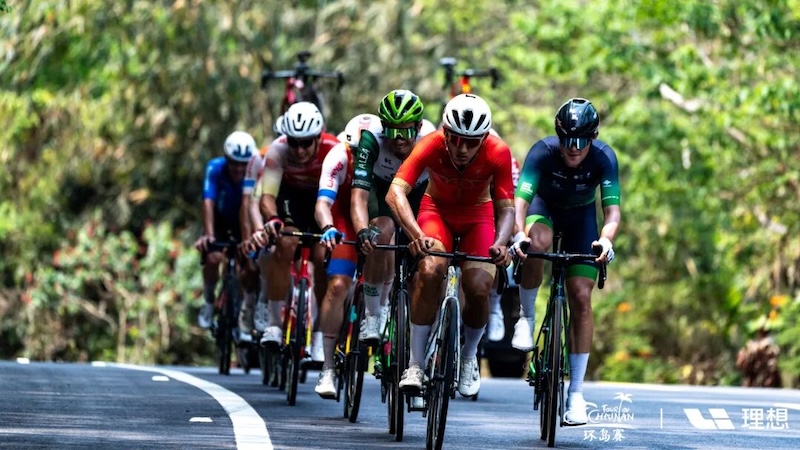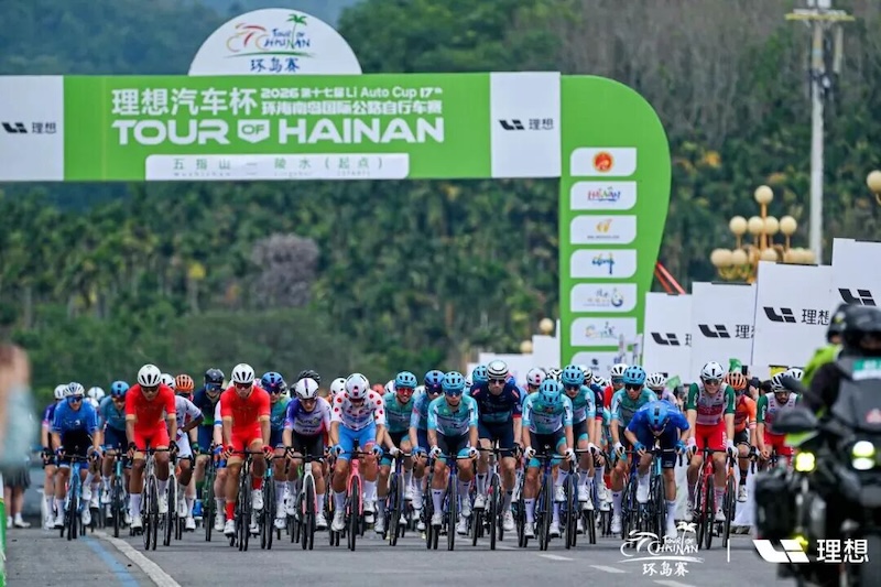 4月17日上午,“理想汽车杯”2026第十七届环海南岛国际公路自行车赛第三赛段的比赛在五指山、琼中、陵水之间展开。