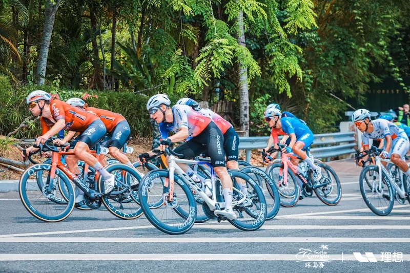 4月18日上午,“理想汽车杯”2026第十七届环海南岛国际公路自行车赛第四赛段的比赛在陵水和保亭之间展开。