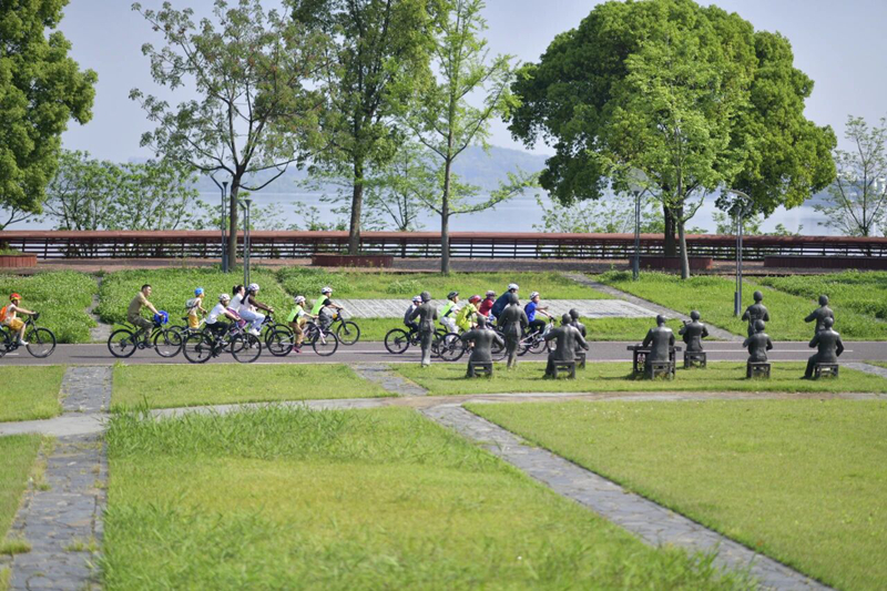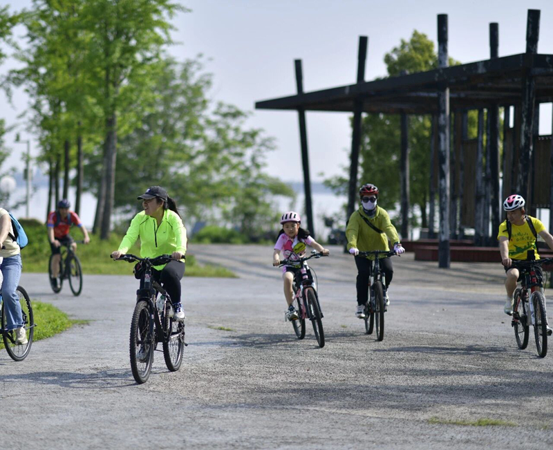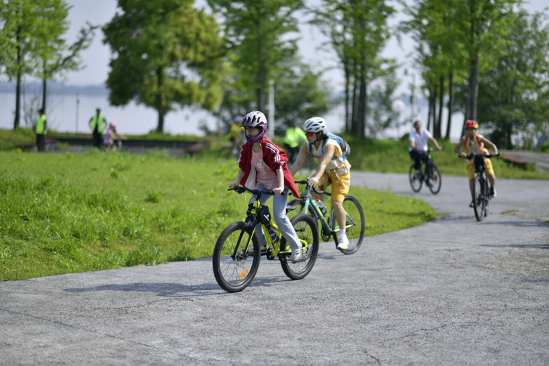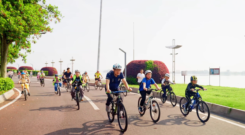 骑行路线沿着柳叶湖骑行,途中风景优美,空气清新,家长与孩子们共同骑着自行车,一路欢声笑语、相互鼓励,车轮滚滚,快乐同行。