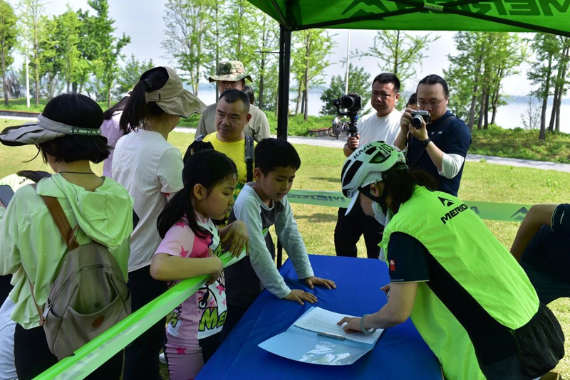 活动当天,阳光明媚,微风和煦。参与家庭早早来到美利达自行车柳叶湖专卖店集合,大家穿戴好骑行装备,精神饱满、热情高涨。在工作人员简单讲解骑行规则、安全注意事项及活动流程后,随着出发指令下达,亲子骑行队伍有序出发。