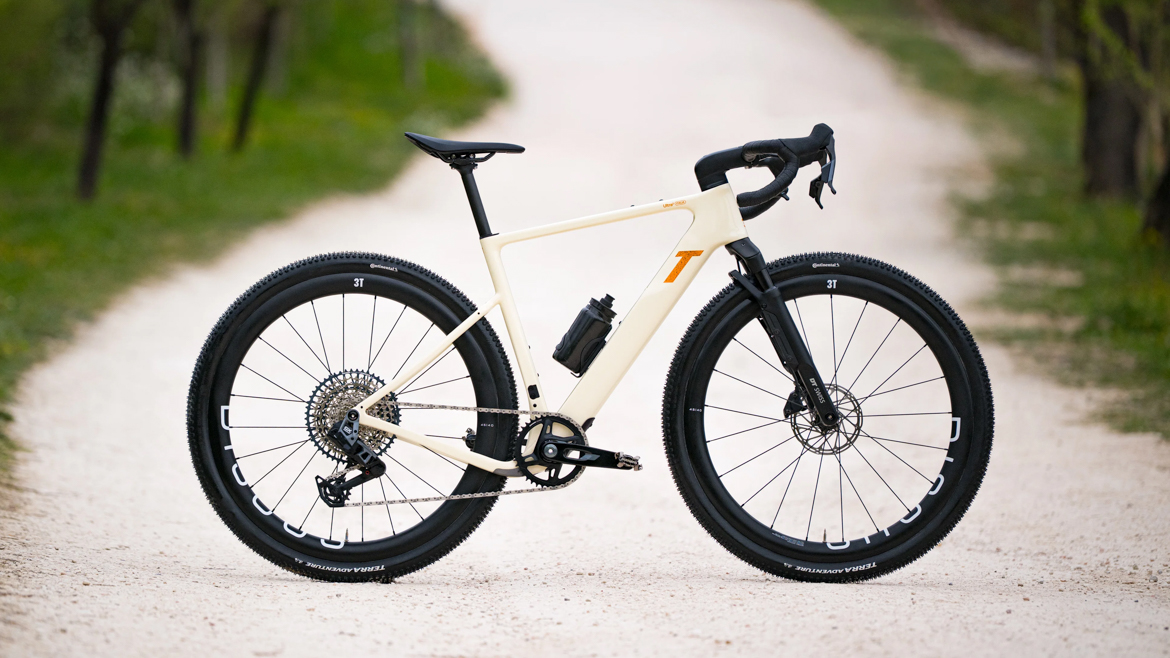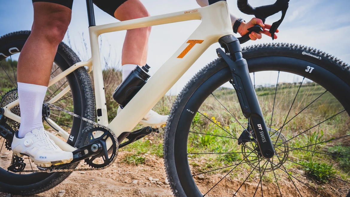 3T正式推出全新Ultra 2 Italia砾石公路车,由意大利本土打造,以Jazz Carbon碳纤维工艺、超大宽胎兼容、舒适长途几何、全地形适配为核心,主打舒适型瓜车的全能定位。采用Jazz的碳纤维工艺,也也是3T的看家本领,简单来说就是碳纤维长丝自动缠绕+树脂传递模塑(RTM)一体成型,让车架有更高刚性重量比与更精准的结构强度,但车架的重量来到1199g。车架最大可容纳57mm的宽胎,前叉采用气动设计,后三角做气动切口,包裹后轮、减少乱流,同时保留27.2mm标准圆座管。几何采用舒适偏向设计,更高Stack、更短Reach,车头抬高、骑行姿态更直立舒展,头管角度最小为69度,操控应该还是可以的。整车起售价约4876欧元,不追求竞速的瓜佬可以考虑一下。
