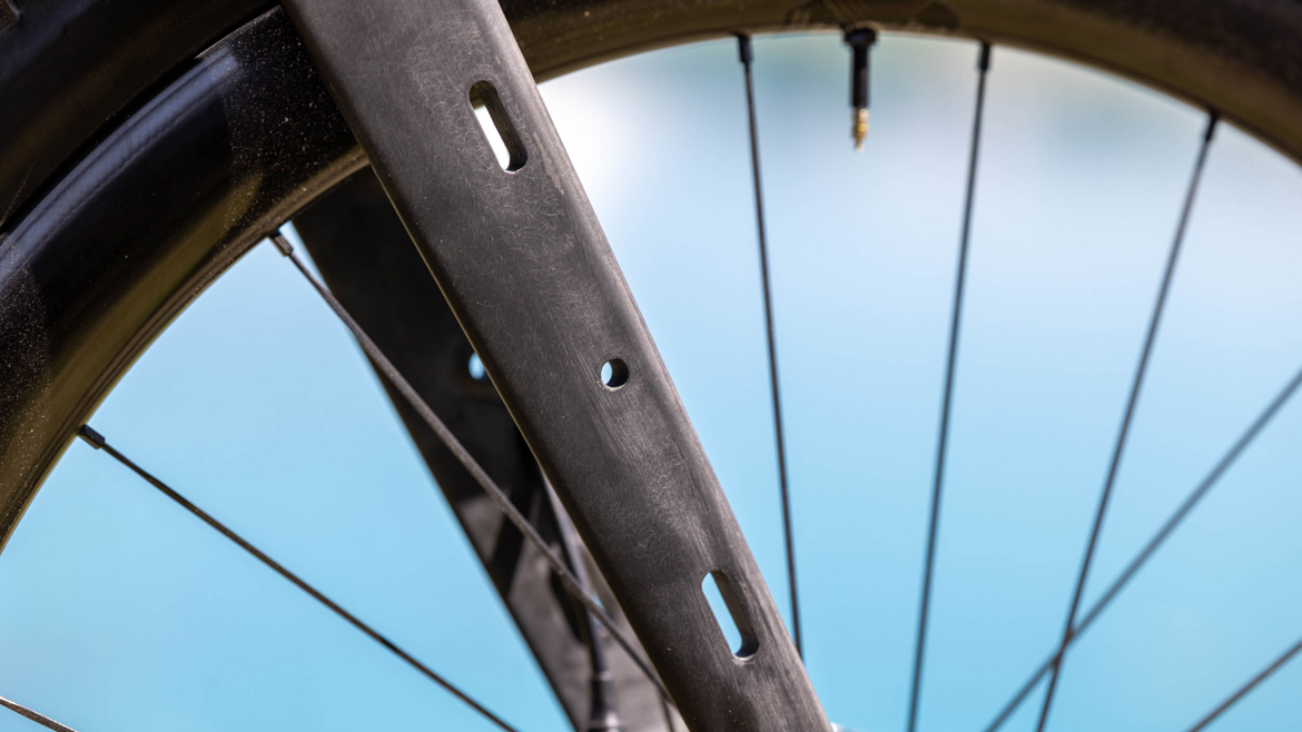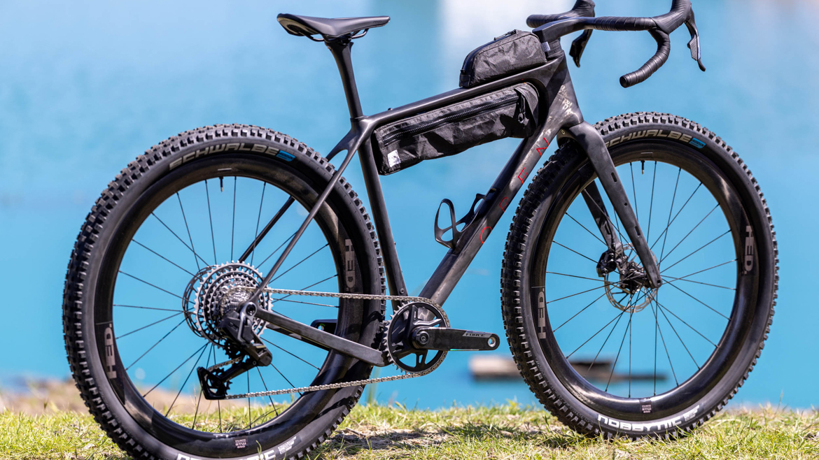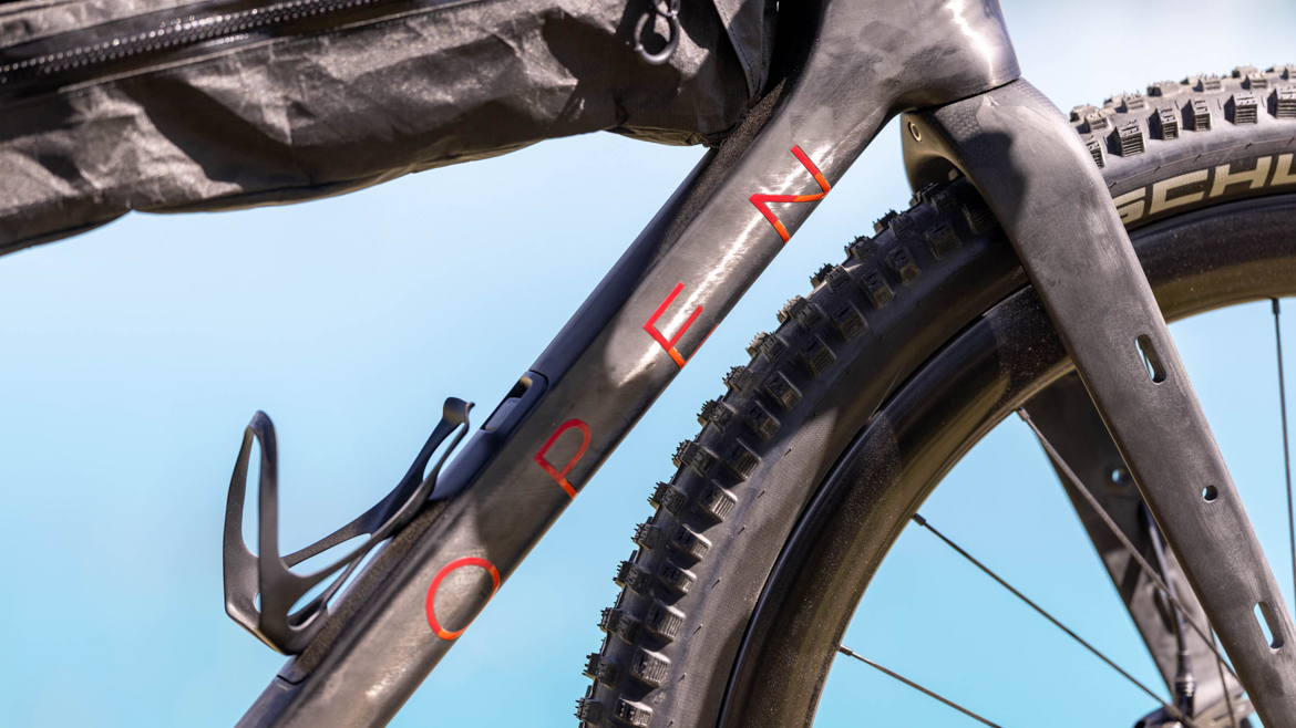 OPEN则更加疯狂,在海獭展上发布了全新的WIDE 2.0。以极限胎容为核心卖点,最大支持700×66C的轮胎或者是2.6英寸的29山地外胎,从轮胎反向设计车架,彻底释放越野舒适性与通过性。放弃了双盘结构,后三角采用专属的双边下沉式设计,后下叉从五通处双重下沉、向内收窄、避开轮胎,大幅提升缓冲、抓地、防扎与通过性,后下叉统一长度为440mm,中码轴距达1055mm。采用高模量碳纤维车架,M码毛坯车架仅重975g,支持内走线和UDH尾钩,侧向刚性提升约8%。并且研发了气动装载前叉,截断翼型气动管型,前叉腿带有独家专利的绑带载物槽。几何上,高Stack、适中Reach、长轴距、缓头管角度,兼顾越野稳定与铺装效率,头管角度为69到71.5,立管角度为73.5。总的来说,新车用极限胎容+全场景装载+稳定的几何,把砾石车的越野边界再向前推进一步。